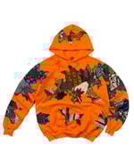 -Upcycled hoodie, combining elements of several materials and mashing them into one, cut & sew