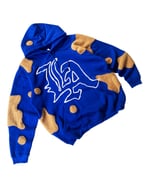 -Upcycled hoodie, combining elements of several materials and mashing them into one, cut & sew